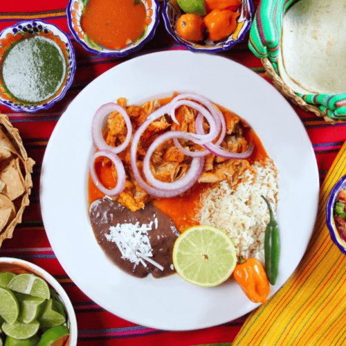 Michoacan. Delicious pork slowly cooked to perfection with authentic traditional ingredients and topped con todo.
