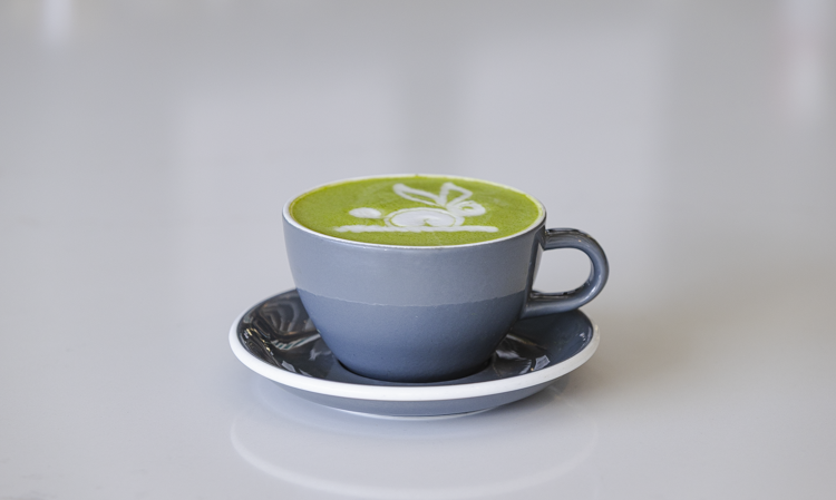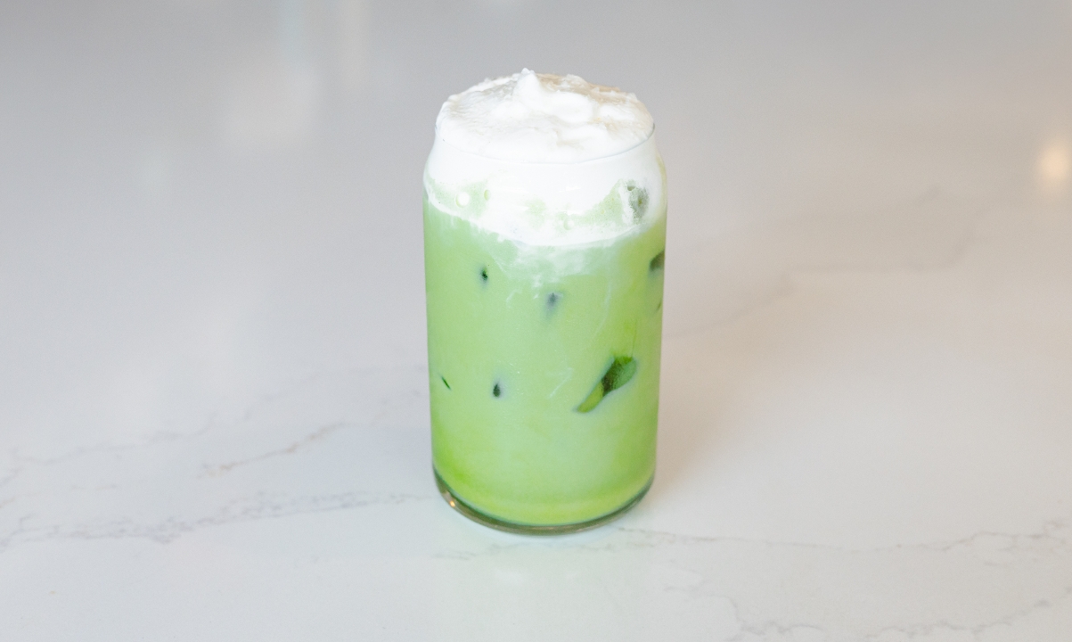 High Garden Matcha tea whisked until silky smooth--then added to your milk/alt-milk of choice.