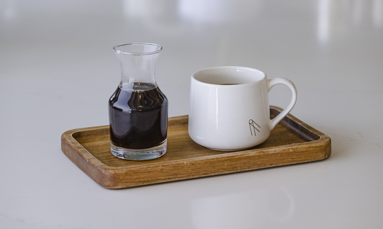 Freshly brewed Synastry--our house roast. Synastry is a medium roasted blend of washed coffees from Ethiopia and Colombia. It is crafted to deliver a consistent cup that creates a vibrant palette of vivid fruit, balanced by a chocolate forward body.