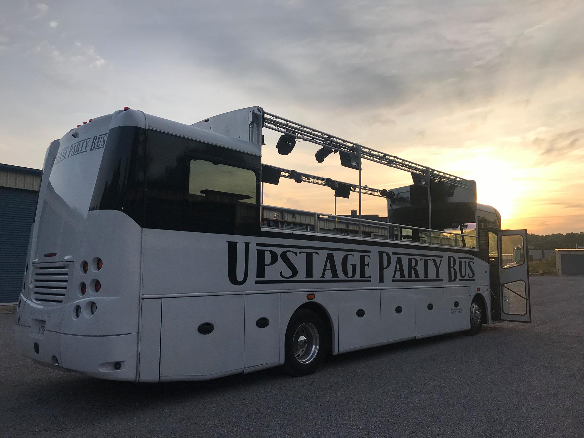 Upstage Party Bus is the home to Nashville’s Best Party Buses! The original Upstage Bus, is the worlds largest fully open-air coach bus, while the Miss Avery Grace bus is Nashville’s bougiest party bus! Nashvilles News Channel 5 lists Upstage Party Bus as a “Must Do” when visiting Nashville! What makes us unique is our attention to detail, amazing staff, and our willingness to exceed your expectations. Each bus is built with its own unique feel with only the highest-end equipment and decor. From our concert grade equipment to our custom-made seating, photo-booths to refrigeration, you can guarantee we “Upstage” our competition. Still unsure which party bus to choose? The Upstage Party Bus is Nashvilles largest fully open air coach bus. The sheer size of it is massive! We believe that the only way to make worlds best party bus, is by using the worlds best bus. Upstage Party Bus is a luxurious coach bus and will hold 30 guests. It features a professional DJ and bartender, 8 televisions that display the music videos, 8 concert lights, and uses a concert stereo system for the cleanest sound. Extras include a photo-booth, refrigeration, fog machine, and custom leather seating that folds up for even more dance room! This bus is 21+ only, and serves drinks for $2-$3. The Miss Avery Grace bus is Nashville’s bougiest party bus! This bus is made for the girls, and yes guys are welcome too! This is a two hour tour with a hostess who doubles as your photographer. The bus itself is has a glittered ceiling, flower wall with photo-booth, a shimmer wall, and custom fold away seating & barstools. Choose between the “Mural Tour ” or the “Nashville Tour”. All tours on this bus are private, and all ages welcome!